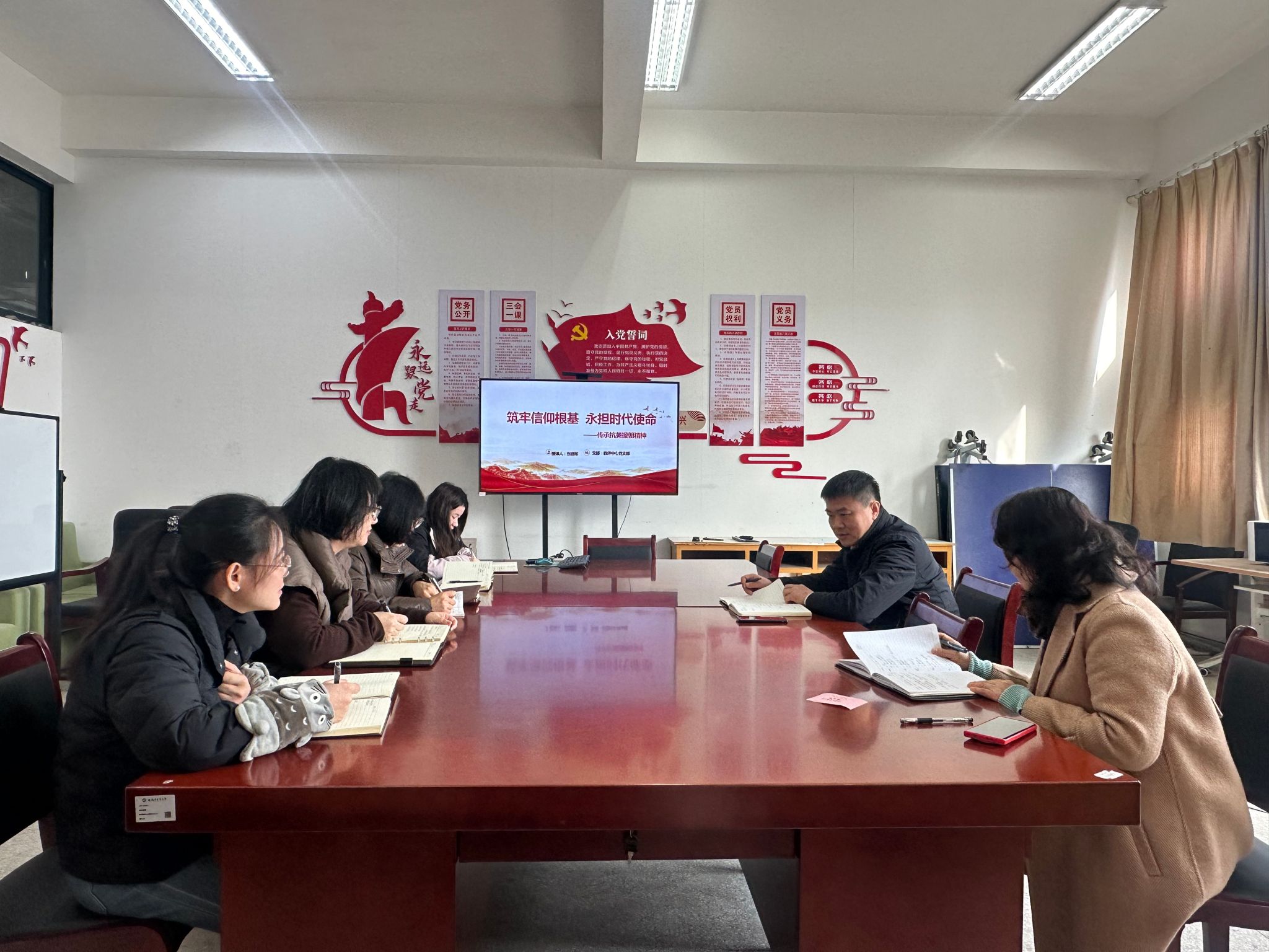 11月10日下午,教评中心党支部举行题为“筑牢信仰根基 永担时代使命”的支部书记讲党课活动。教评中心党支部书记张晓军主讲,全体党员参加。