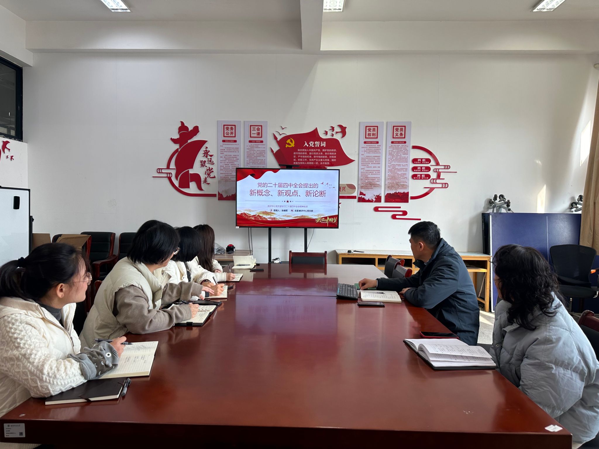 为深入学习宣传贯彻党的二十届四中全会精神,12月26日上午,教评中心党支部举行题为“党的二十届四中全会提出的新概念、新观点、新论断”的支部书记讲党课活动。支部书记张晓军为全体党员讲课,支部全体党员参加。